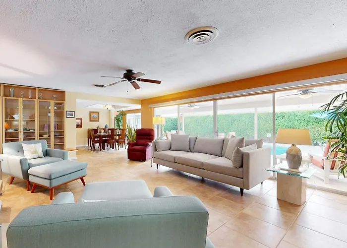 While staying in the accommodation, you are invited to discover Ruth Hardy Park, located approximately a 10-minute drive away, or visit sports venues like O'Donald Golf Course, which is 10 minutes away by car. The hotel offers proximity to natural sights like Tahquitz Canyon (2 km) and Indian Canyons (4.8 km). Cultural experiences in the area feature Palm Springs Air Museum, situated about 10 minutes by car from this property. Guests will find E Palm Cyn at Calle Rolph bus stop next to California Dreamin' in the Desert - 31952 hotel, nearly 15 minutes' walk away.